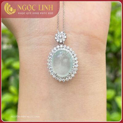 Mặt dây chuyền Phỉ Thuý loại Băng Chủng cao cấp là biểu tượng của sự thuần khiết, trí tuệ, đồng thời tỏa ra năng lượng tích cực cho người đeo.